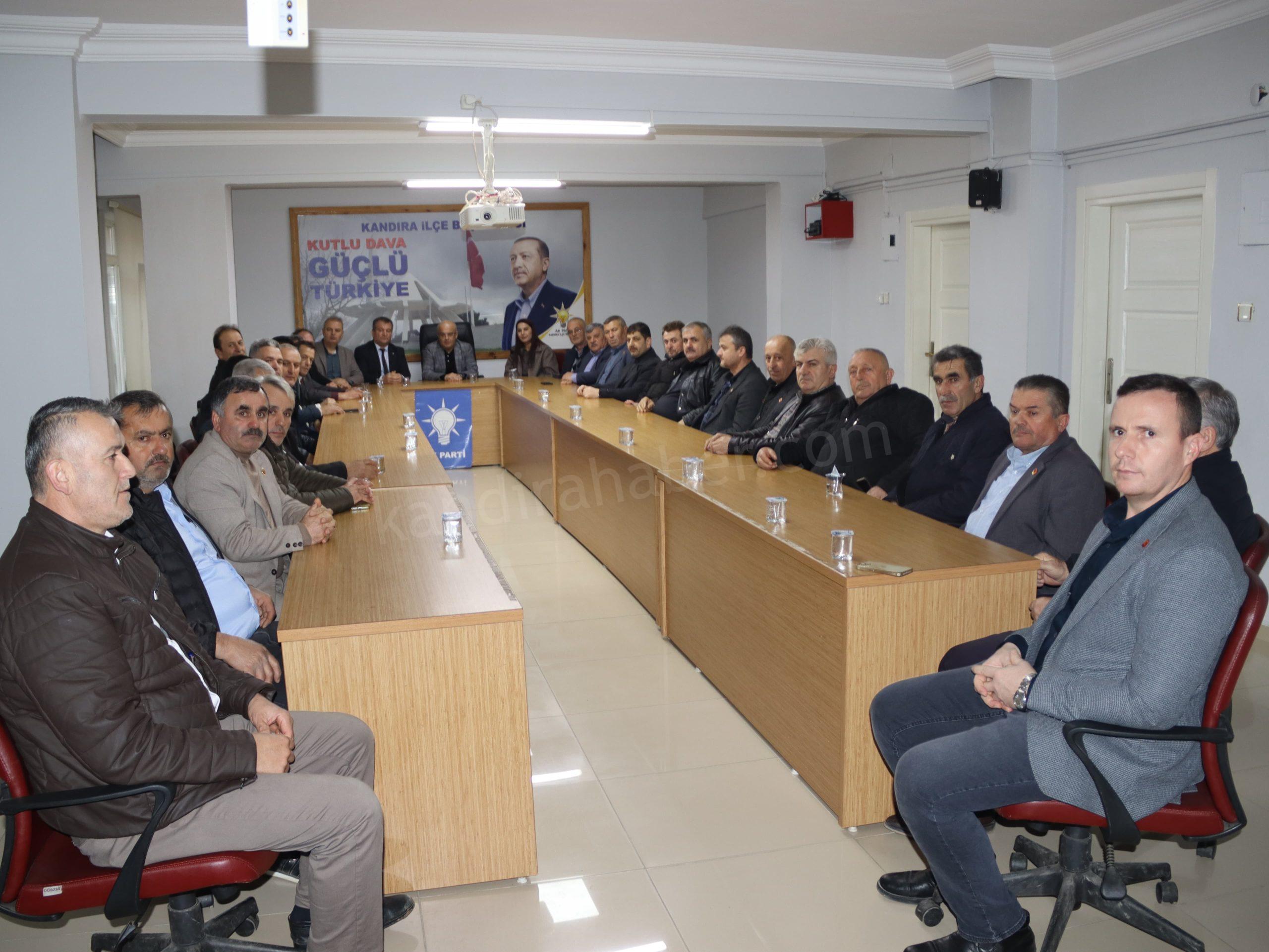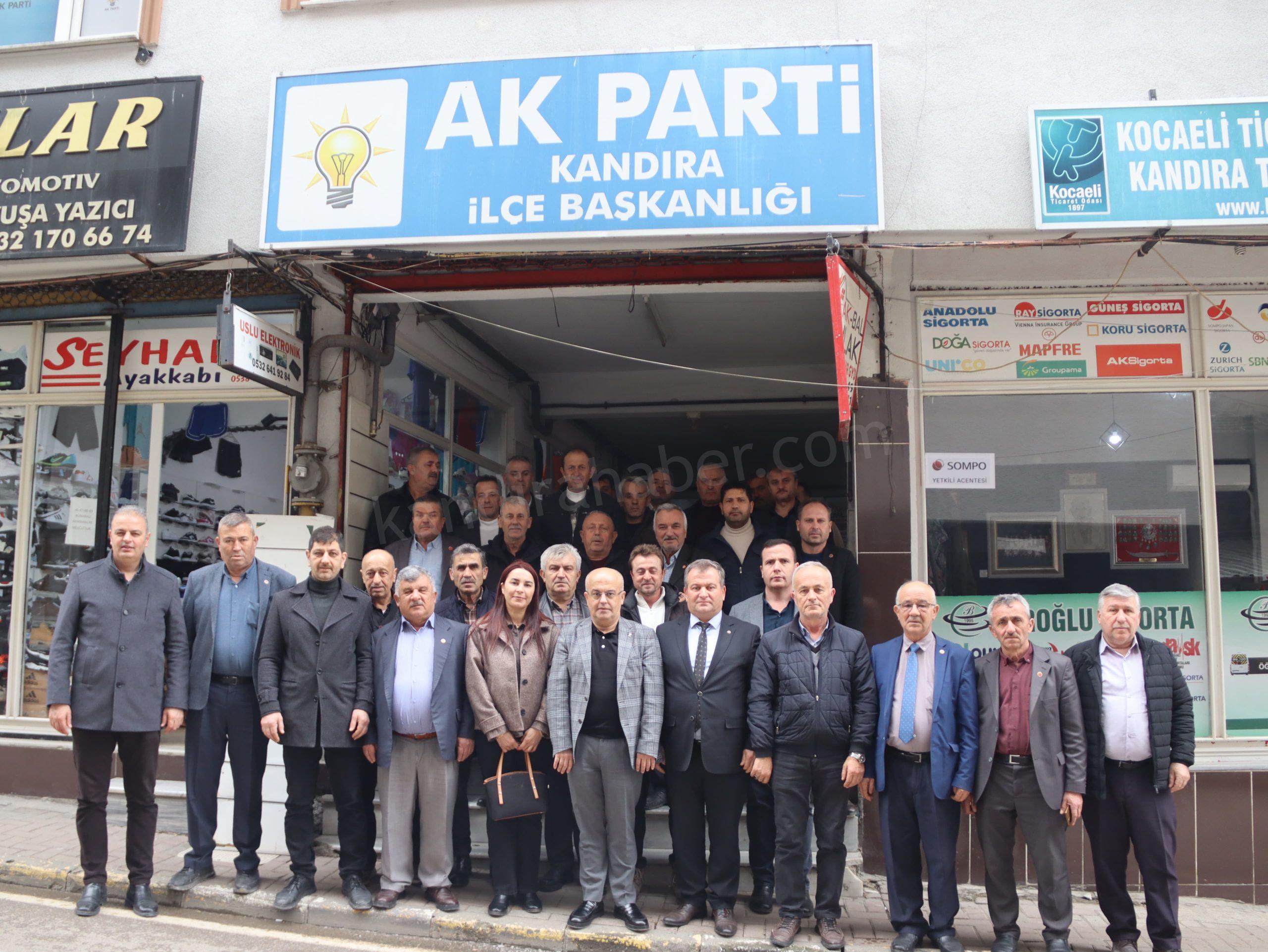 “Türkiye Muhtarlar Derneği Kandıra Şubesi Başkanı Adnan Kaçan ve kıymetli muhtarlarımızın, partimize gerçekleştirdikleri nazik hayırlı olsun ziyaretlerinden dolayı teşekkür ediyorum. Kandıra’mız için ortak akıl, istişare ve dayanışma anlayışıyla; muhtarlarımızla el ele, gönül gönüle çalışmaya devam edeceğiz.”